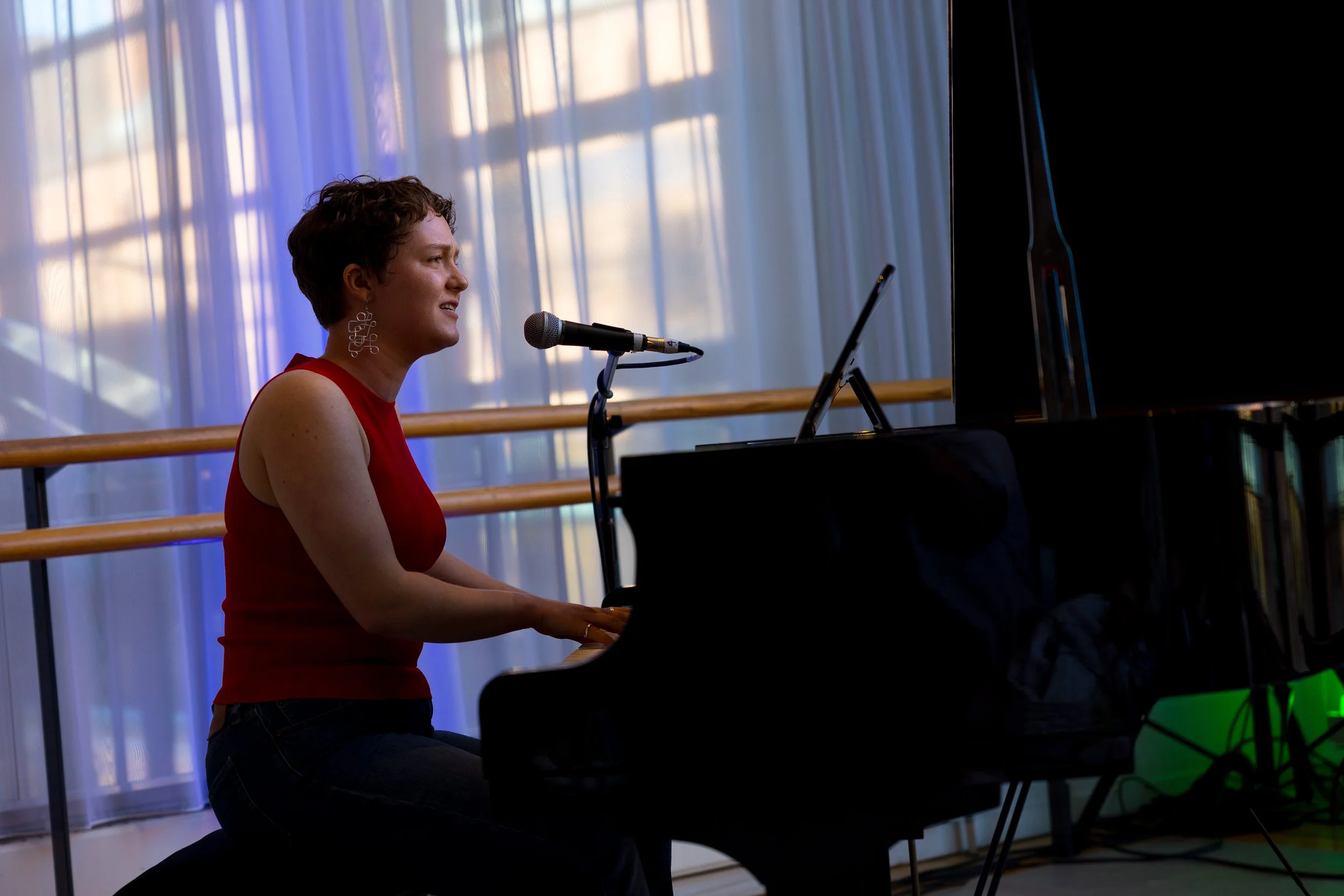 Evie’s work explores themes of identity, community, and politics, through stories of medieval London mayors, rural funeral homes, and supernatural American road trips. Her music blends the storytelling of musical theatre with the lyricism of folk, inspired by heart-on-sleeve songwriting regardless of genre.